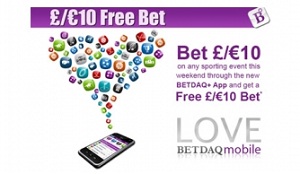 It’s open to new and existing users and all you need to do is bet £/€10 on any sporting event this weekend through the BETDAQ+ App to get a Free £/€10 Mobile Bet. For full terms & conditions please see: here