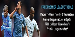 Place a Treble on Tuesday & Wednesday’s Premier League matches and get a FREE treble on this weekend’s Premier League matches*