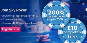 New Sky Poker Welcome Bonus-£10 completely free plus a 200% matched first deposit bonus up to £500